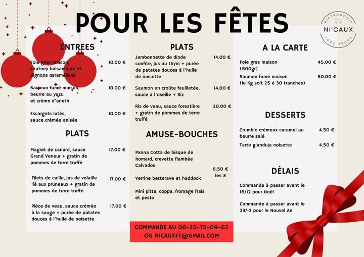 Les menus sont disponibles pour Noël et le jour de l'an.