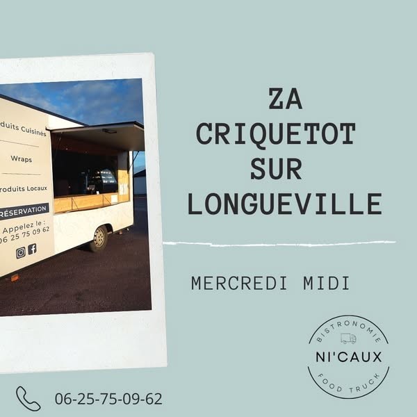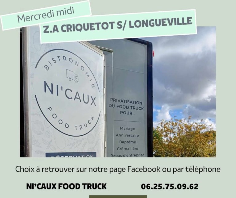 Ni'Caux Food Truck , vous propose des Menus Wrap que vous pourrez réserver au 06 25 75 09 62, pour un passage hebdomadaire (voir planning joint), mais est qualifié pour vous offrir des prestations de traiteur pour évènements. Il saura vous écouter et vous conseiller dans vos démarches festives et vous proposer un service de qualité. N'hésitez pas à le consulter. N'hésitez pas à consulter les menus "wrap" et les propositions traiteurs.