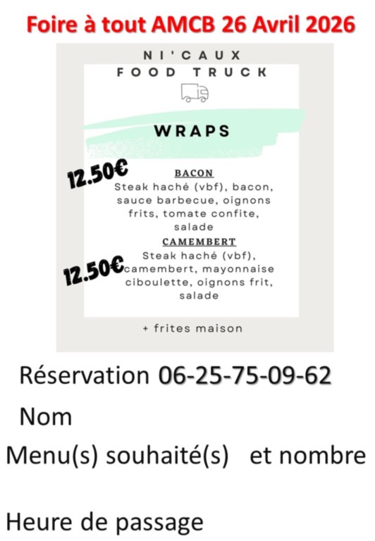 Ni'Caux propsera un menu lors de la foire à tout de l'AMCB https://amcb.la-cle-des-chants.com/. N'hésitez pas à réserver au 06-25-75-09-62,un espace repas sera à proximité du food Truck.